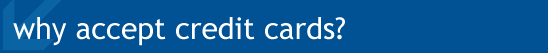 The key in business is to make the sale as easy as possible for the customer. By accepting credit cards, you can eliminate the hassles associated with check writing and searching for cash.